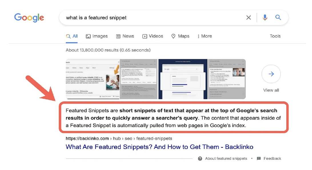 Now, a Featured Snippet is something you really want. You’ve probably seen or even used a Featured Snippet before, even if you didn’t know that that was what it was. These appear in what we call “position zero” at the top of the search results page and give the searcher a brief answer extracted from a webpage that directly answers the user’s question. You can think of it a bit like the next evolution of the “people always ask” feature.